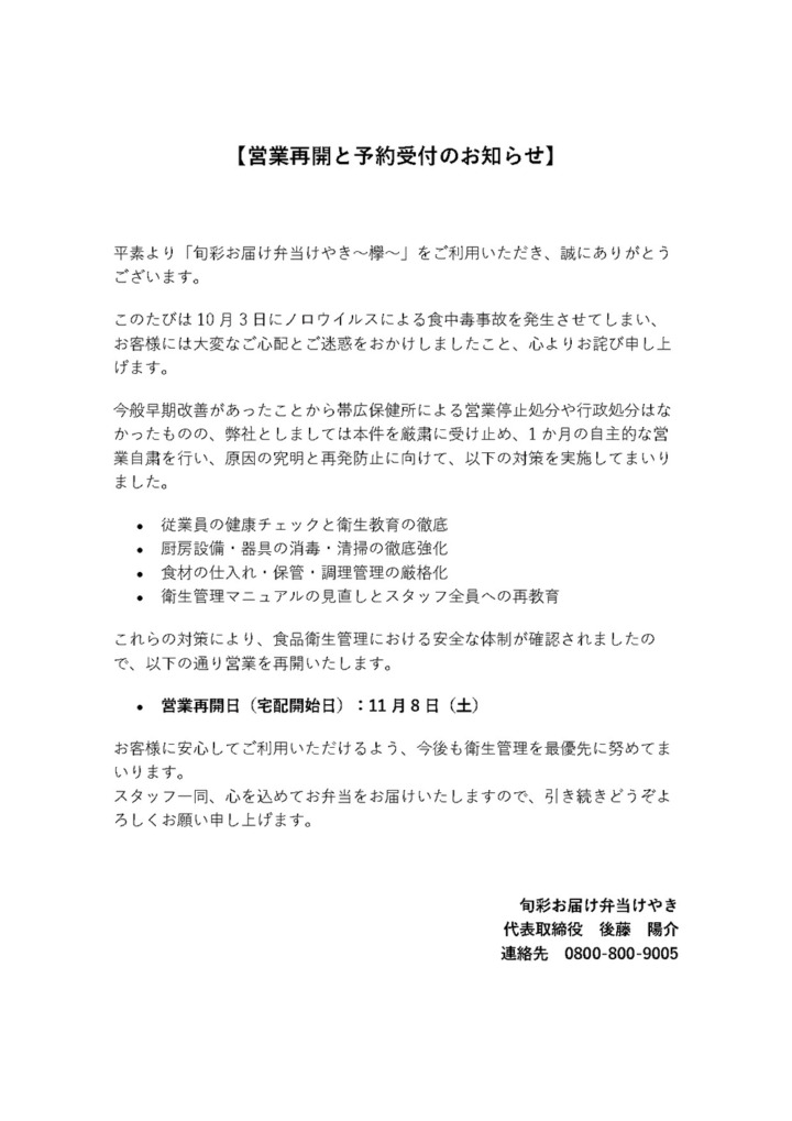 ご予約は2日前14:00迄承ります