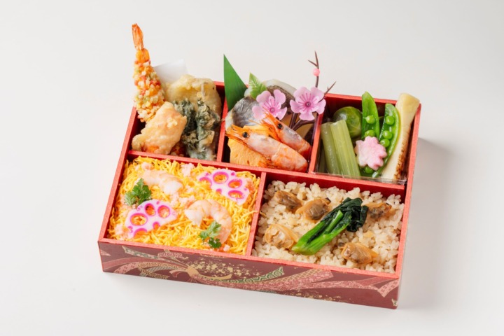 けやき美彩弁当「つばき」 彩りが美しい新作和風弁当です。 ちらし寿司風ご飯とあさりの炊き込みご飯を中心に、季節の天婦羅、芽キャベツを使用した煮物など、仕切ごとに異なる味わいと食感が楽します。 華やかな容器を使用し、見た目にも美しい彩り豊かな一品です。 アレルギー表示 甲殻類・小麦粉・大豆・卵・乳製品 けやき美彩弁当「つばき」 1,944円(税込) 数量: - + ※お弁当は一商品2個以上からご注文承ります。 前のページに戻る