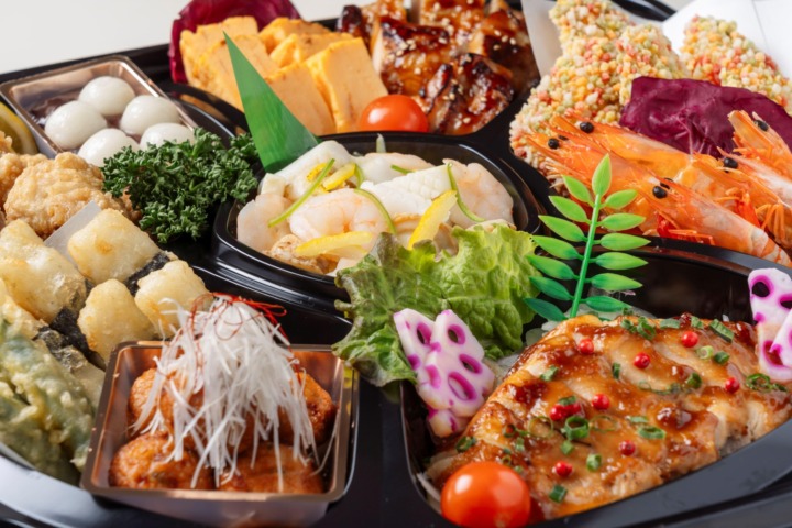 けやき謹製和風オードブル2026 【4~6人盛】お子様からご年配の方までご一緒にお楽しみいただける内容にリニューアルしいたしました。 【お品書き】鶏の照り焼き・玉子焼き・白玉ぜんざい・鶏肉の唐揚げ・山芋短冊揚げ・オクラの天婦羅・海鮮とレンコンのすり身白あん和え・豚ロース肉みそ焼き・有頭海老煮・鱈の五色あられ揚げ・海鮮ゆず和え サイズ:40cm×40cm アレルギー表示 甲殻類・卵・小麦粉・大豆・牛乳 けやき謹製和風オードブル2026 6,480円(税込) 数量: - + ※お弁当は一商品2個以上からご注文承ります。 前のページに戻る